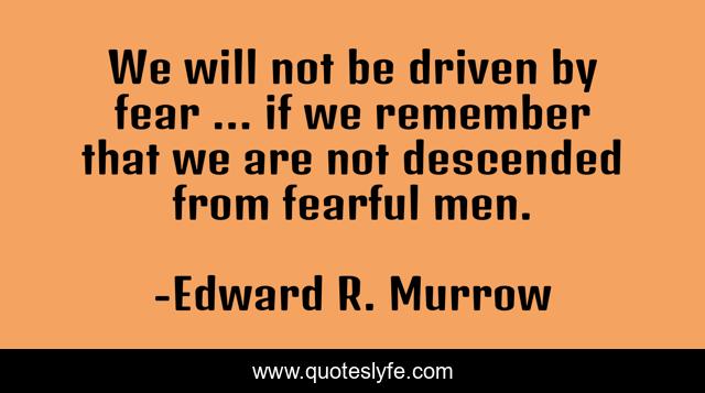 This page presents the quote "We will not be driven by fear ... if we remember that we are not descended from fearful men.". Author of this quote is Edward R. Murrow. This quote is about ways, fear, overcome,.