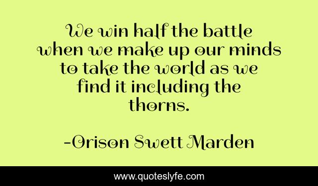 This page presents the quote "We win half the battle when we make up our minds to take the world as we find it including the thorns.". Author of this quote is Orison Swett Marden. .