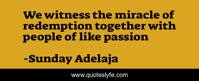 "Sunday Adelaja Quotes." Quoteslyfe.com, 2025. Tue. 09 Dec. 2025. <https://www.quoteslyfe.com/quote/We-witness-the-miracle-of-redemption-together-92461>.