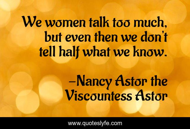 "Nancy Astor the Viscountess Astor Quotes." Quoteslyfe.com, 2025. Mon. 08 Dec. 2025. <https://www.quoteslyfe.com/quote/We-women-talk-too-much-but-even-30534>.