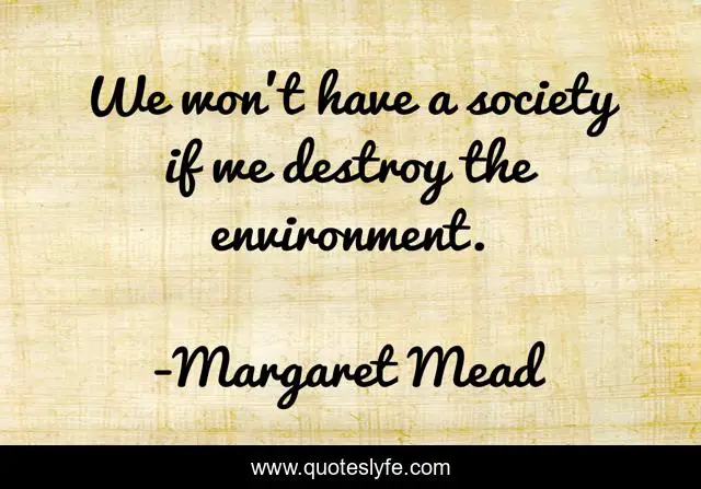This page presents the quote "We won't have a society if we destroy the environment.". Author of this quote is Margaret Mead. This quote is about environment, society,.