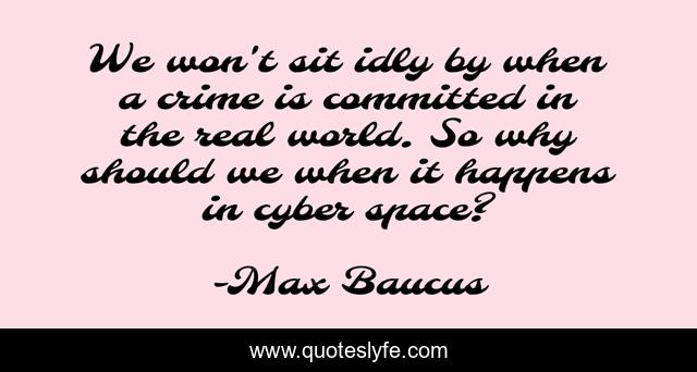 This page presents the quote "We won't sit idly by when a crime is committed in the real world. So why should we when it happens in cyber space?". Author of this quote is Max Baucus. This quote is about world, why, crime,.