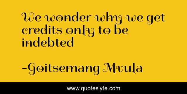 "Goitsemang Mvula Quotes." Quoteslyfe.com, 2025. Fri. 05 Dec. 2025. <https://www.quoteslyfe.com/quote/We-wonder-why-we-get-credits-only-33979>.