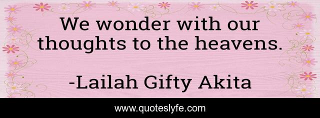 This page presents the quote "We wonder with our thoughts to the heavens.". Author of this quote is Lailah Gifty Akita. This quote is about imagination, spiritual, lailah-gifty-akita-affirmations, creativity, wonder,.