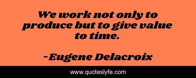 This page presents the quote "We work not only to produce but to give value to time.". Author of this quote is Eugene Delacroix. This quote is about day, one,.
