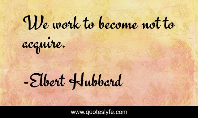 This page presents the quote "We work to become not to acquire.". Author of this quote is Elbert Hubbard. .