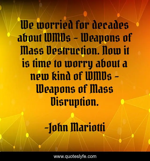 "John Mariotti Quotes." Quoteslyfe.com, 2025. Fri. 05 Dec. 2025. <https://www.quoteslyfe.com/quote/We-worried-for-decades-about-WMDs-Weapons-243456>.