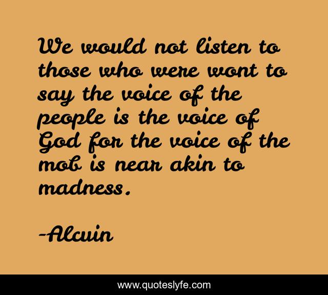 This page presents the quote "We would not listen to those who were wont to say the voice of the people is the voice of God for the voice of the mob is near akin to madness.". Author of this quote is Alcuin. .