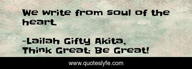 "Lailah Gifty Akita, Think Great: Be Great! Quotes." Quoteslyfe.com, 2025. Sun. 07 Dec. 2025. <https://www.quoteslyfe.com/quote/We-write-from-soul-of-the-heart-124060>.