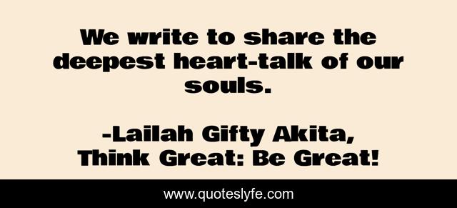 "Lailah Gifty Akita, Think Great: Be Great! Quotes." Quoteslyfe.com, 2025. Fri. 05 Dec. 2025. <https://www.quoteslyfe.com/quote/We-write-to-share-the-deepest-heart-147168>.