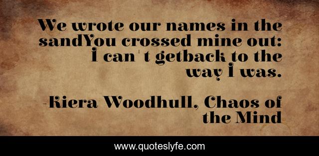 This page presents the quote "We wrote our names in the sandYou crossed mine out: I can't getback to the way I was.". Author of this quote is Kiera Woodhull, Chaos of the Mind. This quote is about loss, changes, poetry,.