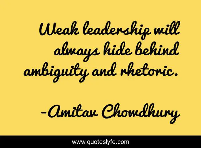 "Amitav Chowdhury Quotes." Quoteslyfe.com, 2025. Mon. 08 Dec. 2025. <https://www.quoteslyfe.com/quote/Weak-leadership-will-always-hide-behind-ambiguity-65000>.