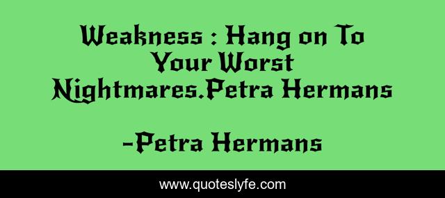 "Petra Hermans Quotes." Quoteslyfe.com, 2025. Sun. 07 Dec. 2025. <https://www.quoteslyfe.com/quote/Weakness-Hang-on-To-Your-Worst-Nightmares-244961>.