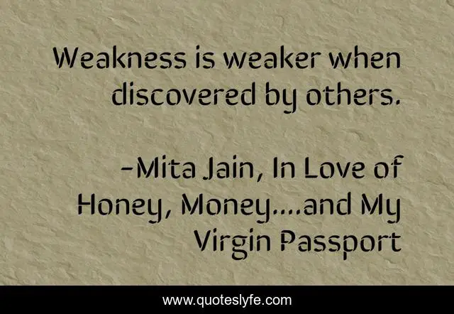 "Mita Jain, In Love of Honey, Money....and My Virgin Passport Quotes." Quoteslyfe.com, 2025. Fri. 05 Dec. 2025. <https://www.quoteslyfe.com/quote/Weakness-is-weaker-when-discovered-by-others-247946>.