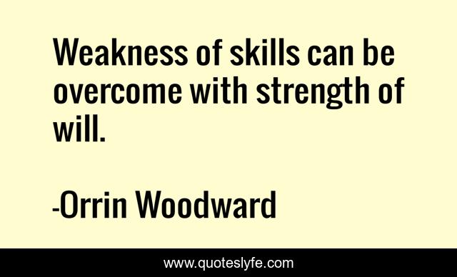 This page presents the quote "Weakness of skills can be overcome with strength of will.". Author of this quote is Orrin Woodward. This quote is about skills, failure, success,.