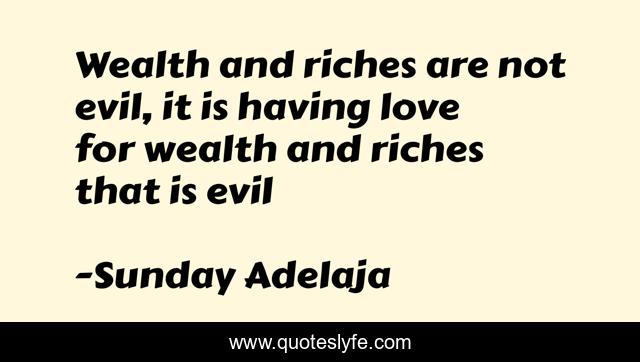 This page presents the quote "Wealth and riches are not evil, it is having love for wealth and riches that is evil". Author of this quote is Sunday Adelaja. This quote is about evil, love, riches, wealth, affection,.