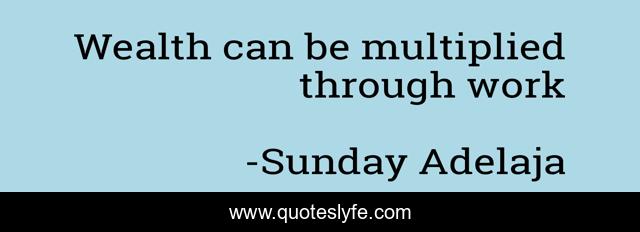 This page presents the quote "Wealth can be multiplied through work". Author of this quote is Sunday Adelaja. This quote is about prosperity, wealth, golden-truth, money, multiplied, work, riches,.