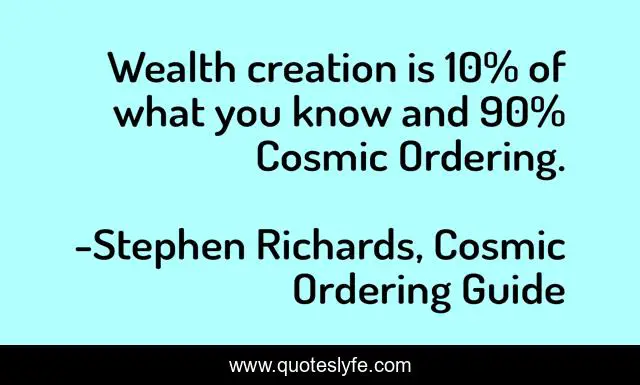 "Stephen Richards, Cosmic Ordering Guide Quotes." Quoteslyfe.com, 2025. Fri. 05 Dec. 2025. <https://www.quoteslyfe.com/quote/Wealth-creation-is-10-of-what-you-16965>.