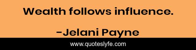 This page presents the quote "Wealth follows influence.". Author of this quote is Jelani Payne. This quote is about money, finance, wealth,.