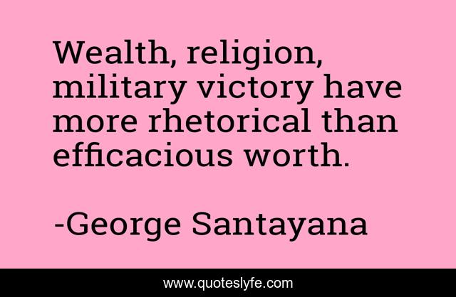 This page presents the quote "Wealth, religion, military victory have more rhetorical than efficacious worth.". Author of this quote is George Santayana. This quote is about military, victory, wealth,.