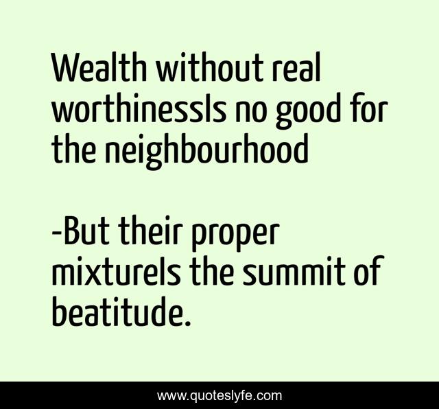 "But their proper mixtureIs the summit of beatitude. Quotes." Quoteslyfe.com, 2025. Sat. 06 Dec. 2025. <https://www.quoteslyfe.com/quote/Wealth-without-real-worthinessIs-no-good-for-13941>.