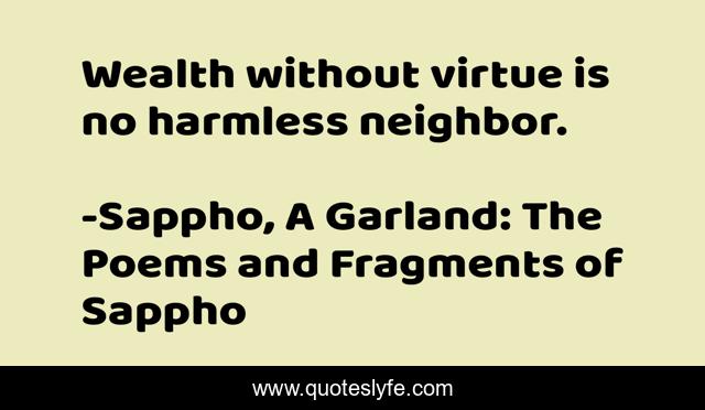 "Sappho, A Garland: The Poems and Fragments of Sappho Quotes." Quoteslyfe.com, 2025. Sat. 06 Dec. 2025. <https://www.quoteslyfe.com/quote/Wealth-without-virtue-is-no-harmless-neighbor-136557>.