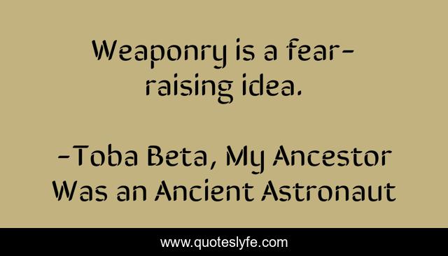 "Toba Beta, My Ancestor Was an Ancient Astronaut Quotes." Quoteslyfe.com, 2025. Sun. 07 Dec. 2025. <https://www.quoteslyfe.com/quote/Weaponry-is-a-fear-raising-idea-45387>.