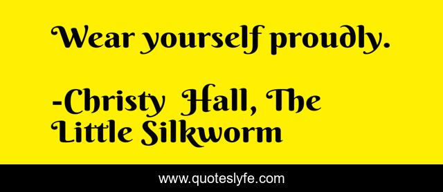 "Christy Hall, The Little Silkworm Quotes." Quoteslyfe.com, 2025. Sat. 06 Dec. 2025. <https://www.quoteslyfe.com/quote/Wear-yourself-proudly-255641>.