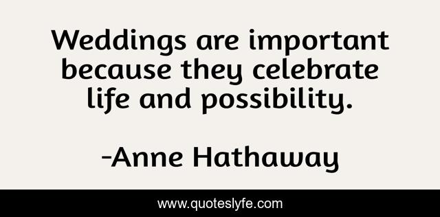 "Anne Hathaway Quotes." Quoteslyfe.com, 2025. Sun. 07 Dec. 2025. <https://www.quoteslyfe.com/quote/Weddings-are-important-because-they-celebrate-life-323808>.