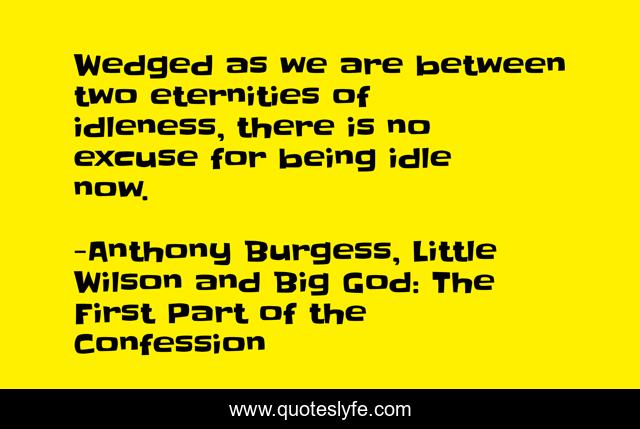 This page presents the quote "Wedged as we are between two eternities of idleness, there is no excuse for being idle now.". Author of this quote is Anthony Burgess, Little Wilson and Big God: The First Part of the Confession. This quote is about eternity, death, idleness,.