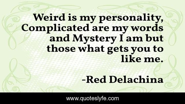 This page presents the quote "Weird is my personality, Complicated are my words and Mystery I am but those what gets you to like me.". Author of this quote is Red Delachina. This quote is about mystery, personality, inpirational, weirdness,.