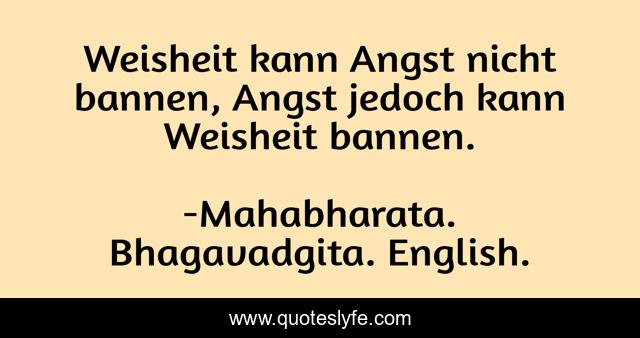 "Mahabharata. Bhagavadgita. English. Quotes." Quoteslyfe.com, 2025. Sun. 07 Dec. 2025. <https://www.quoteslyfe.com/quote/Weisheit-kann-Angst-nicht-bannen-Angst-jedoch-13290>.