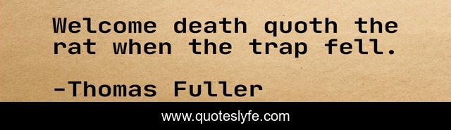 This page presents the quote "Welcome death quoth the rat when the trap fell.". Author of this quote is Thomas Fuller. .