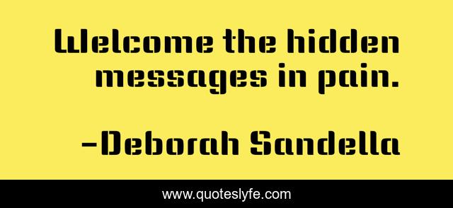 "Deborah Sandella Quotes." Quoteslyfe.com, 2025. Fri. 05 Dec. 2025. <https://www.quoteslyfe.com/quote/Welcome-the-hidden-messages-in-pain-75887>.