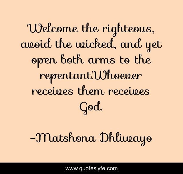 "Matshona Dhliwayo Quotes." Quoteslyfe.com, 2025. Sat. 06 Dec. 2025. <https://www.quoteslyfe.com/quote/Welcome-the-righteous-avoid-the-wicked-and-121222>.