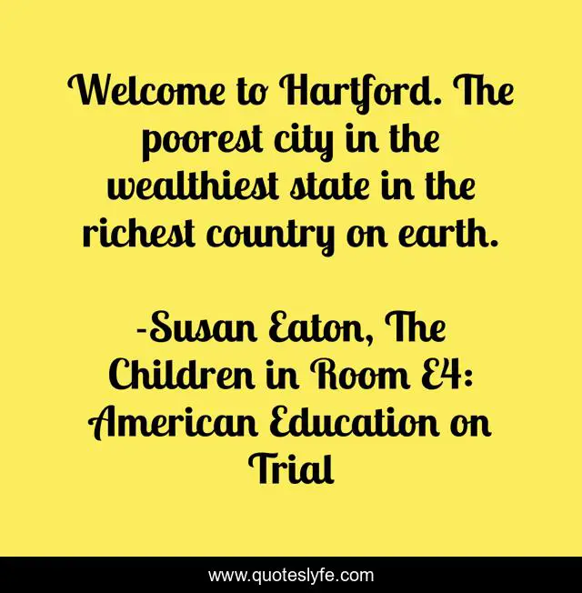 "Susan Eaton, The Children in Room E4: American Education on Trial Quotes." Quoteslyfe.com, 2025. Tue. 09 Dec. 2025. <https://www.quoteslyfe.com/quote/Welcome-to-Hartford-The-poorest-city-in-33697>.