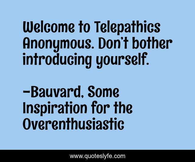 "Bauvard, Some Inspiration for the Overenthusiastic Quotes." Quoteslyfe.com, 2025. Sun. 07 Dec. 2025. <https://www.quoteslyfe.com/quote/Welcome-to-Telepathics-Anonymous-Don-t-bother-40747>.
