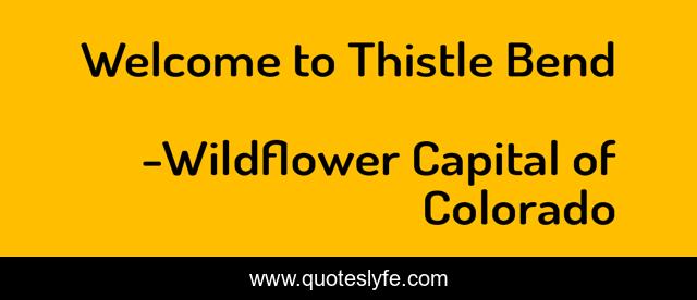 "Wildflower Capital of Colorado Quotes." Quoteslyfe.com, 2025. Tue. 09 Dec. 2025. <https://www.quoteslyfe.com/quote/Welcome-to-Thistle-Bend-154948>.