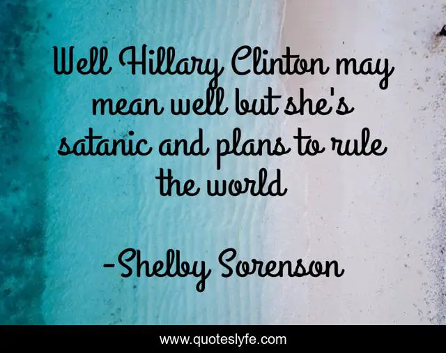This page presents the quote "Well Hillary Clinton may mean well but she's satanic and plans to rule the world". Author of this quote is Shelby Sorenson. .