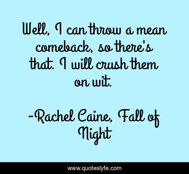 "Rachel Caine, Fall of Night Quotes." Quoteslyfe.com, 2025. Fri. 05 Dec. 2025. <https://www.quoteslyfe.com/quote/Well-I-can-throw-a-mean-comeback-256426>.