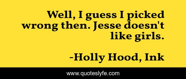 This page presents the quote "Well, I guess I picked wrong then. Jesse doesn't like girls.". Author of this quote is Holly Hood, Ink. .