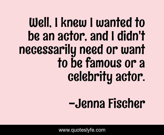This page presents the quote "Well, I knew I wanted to be an actor, and I didn't necessarily need or want to be famous or a celebrity actor.". Author of this quote is Jenna Fischer. This quote is about celebrity, actor,.