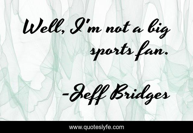This page presents the quote "Well, I'm not a big sports fan.". Author of this quote is Jeff Bridges. This quote is about big, fan, well,.