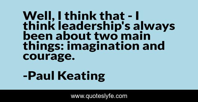 This page presents the quote "Well, I think that - I think leadership's always been about two main things: imagination and courage.". Author of this quote is Paul Keating. This quote is about imagination, courage, think,.
