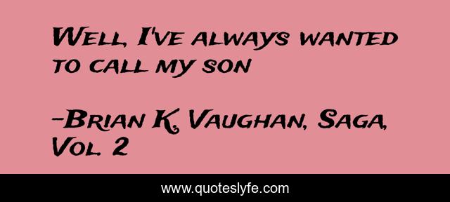 This page presents the quote "Well, I've always wanted to call my son". Author of this quote is Brian K. Vaughan, Saga, Vol. 2. This quote is about comics, dialogue, humor, family, child,.