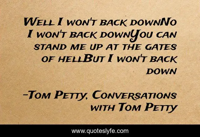 "Tom Petty, Conversations with Tom Petty Quotes." Quoteslyfe.com, 2025. Fri. 05 Dec. 2025. <https://www.quoteslyfe.com/quote/Well-I-won-t-back-downNo-I-202782>.