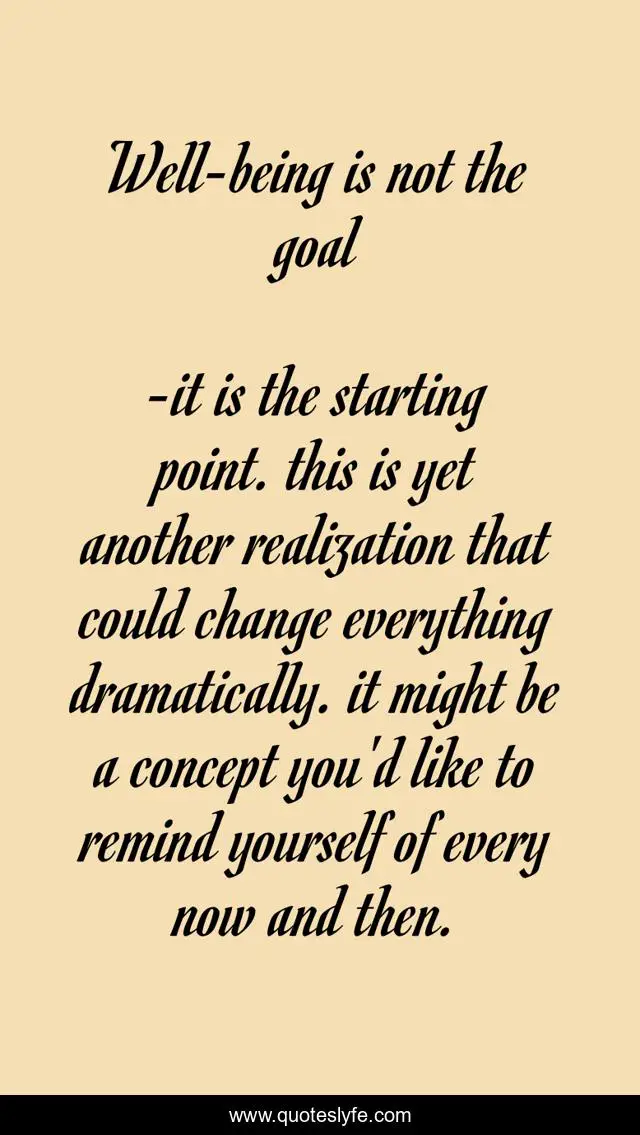 "it is the starting point. this is yet another realization that could change everything dramatically. it might be a concept you'd like to remind yourself of every now and then. Quotes." Quoteslyfe.com, 2025. Fri. 05 Dec. 2025. <https://www.quoteslyfe.com/quote/Well-being-is-not-the-goal-175718>.