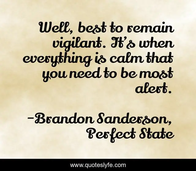 "Brandon Sanderson, Perfect State Quotes." Quoteslyfe.com, 2025. Mon. 08 Dec. 2025. <https://www.quoteslyfe.com/quote/Well-best-to-remain-vigilant-It-s-240793>.