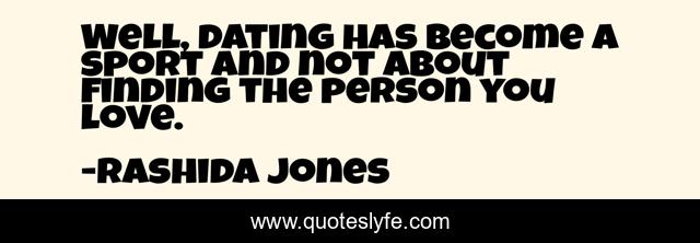 This page presents the quote "Well, dating has become a sport and not about finding the person you love.". Author of this quote is Rashida Jones. This quote is about finding, love, affection,.