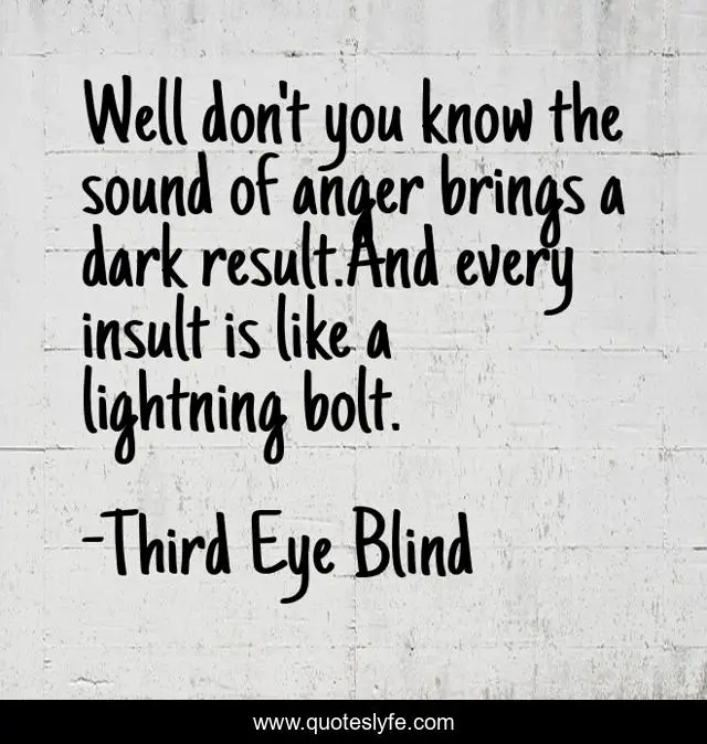 This page presents the quote "Well don't you know the sound of anger brings a dark result.And every insult is like a lightning bolt.". Author of this quote is Third Eye Blind. .